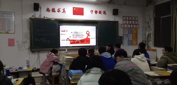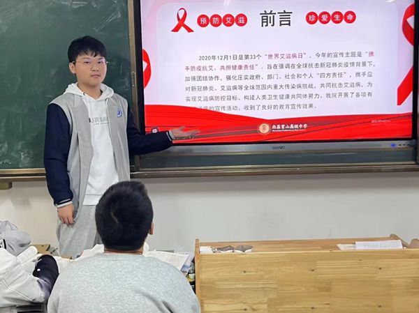活動上,各班班主任通過播放短視頻、PPT等方式,重點圍繞“艾滋病的癥狀、傳播途徑、預(yù)防措施”等方面進行解讀,并結(jié)合生活中的實例,幫助學(xué)生全面掌握防艾知識,提高健康預(yù)防知識。